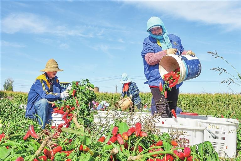 新城镇嘉峪关百亩田蔬菜种植农民专业合作社300余亩子弹头辣椒喜获丰收。 李巍