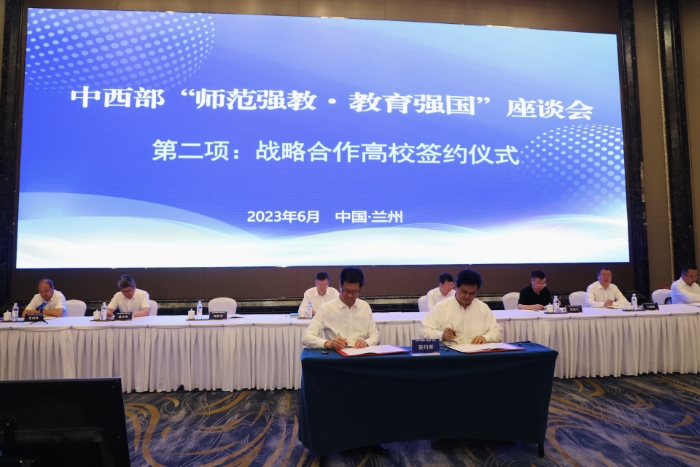 会上,北京师范大学、华东师范大学与西北师范大学,天津师范大学与天水师范学院进行了战略合作高校签约。甘肃省副省长李刚,甘肃省政协副主席、西北师范大学校长刘仲奎为“甘肃省教师发展中心”揭牌。