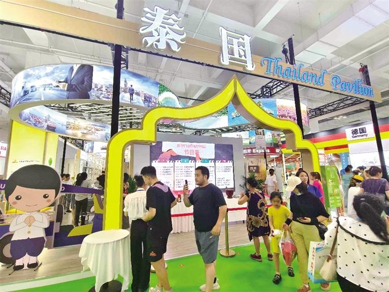 间隔不远的泰国馆简洁明亮,富有泰国特色。展馆整体划分为接待区、洽谈区、舞台表演互动区等,通过造型、多媒体、图片及表演等形式,展示着Food美食、Fighting泰拳、Film电影、Fashion时尚和Festival节日等多元素。
