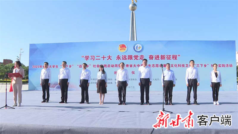 7月17日,由团中央青年发展部、省委宣传部、省文明办、省教育厅、省人社厅、团省委、省学联共同主办,金昌团市委、永昌县委、金川区委联合承办的2023年全国大学生“三下乡”“返家乡”社会实践启动周系列活动暨甘肃省大中专学生志愿者暑期文化科技卫生“三下乡”社会实践活动出征仪式在金昌市举行。