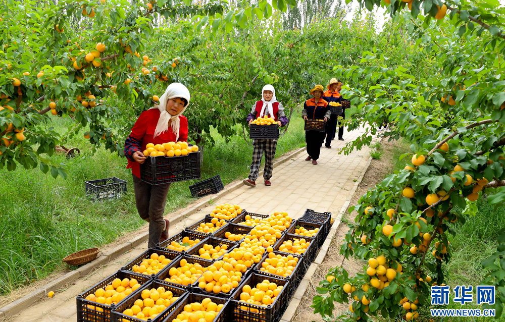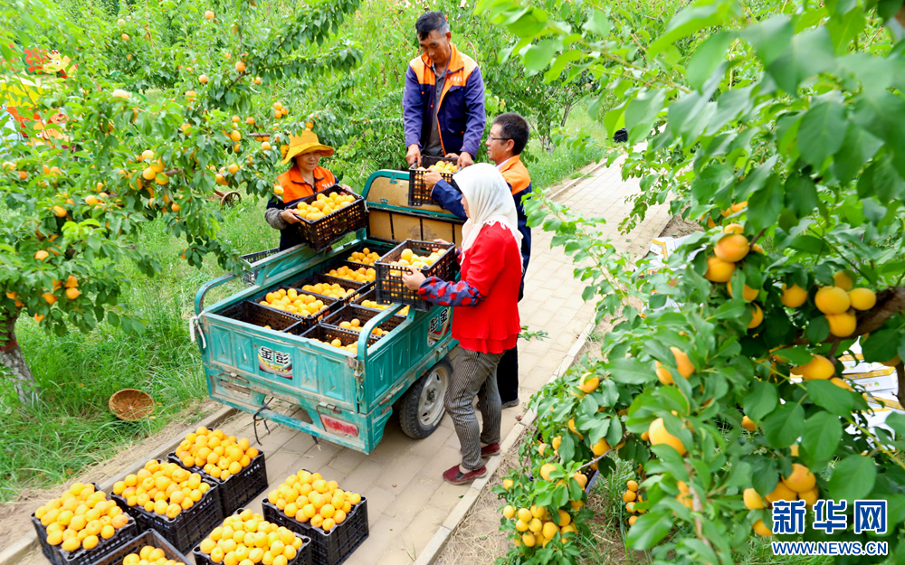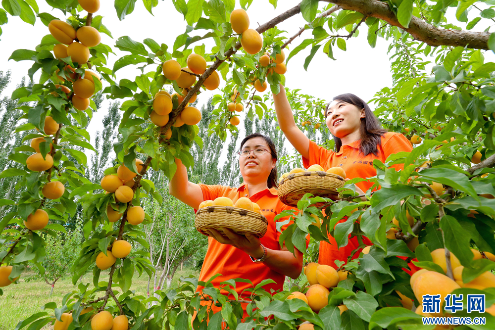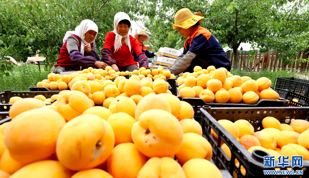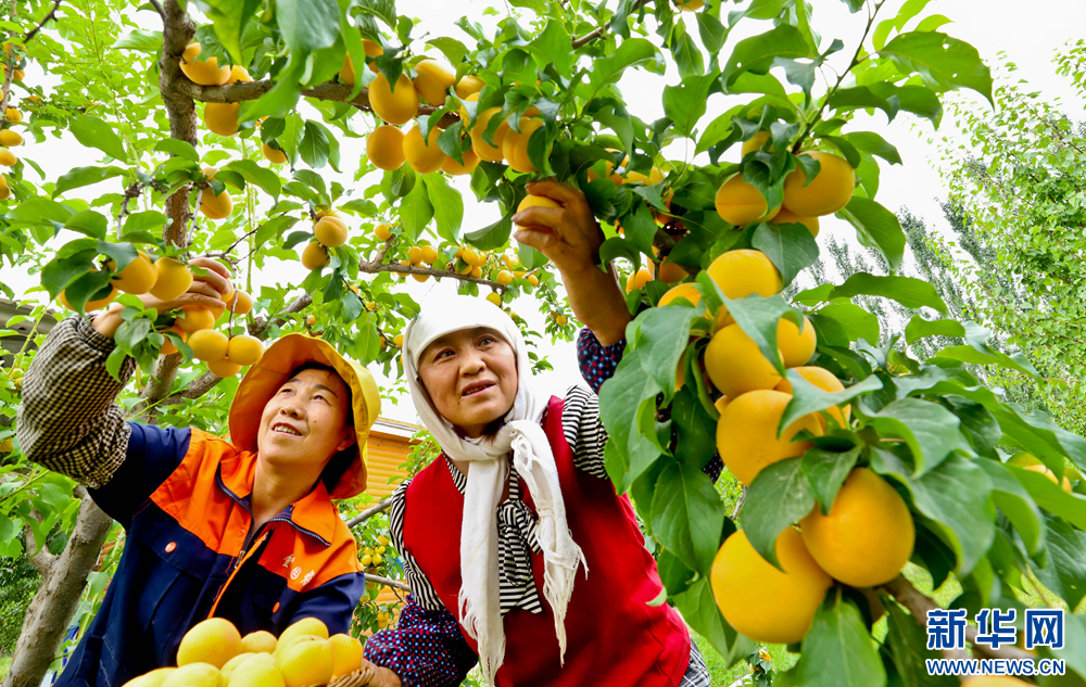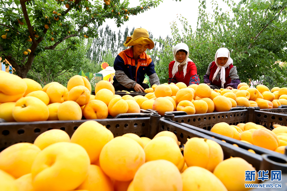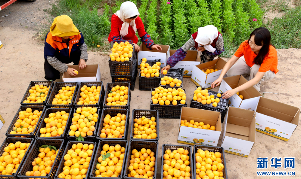 连日来,甘肃省张掖市甘州区石岗墩滩金满园农牧农民专业合作社2300多亩珍珠油杏种植基地的杏梅进入成熟采摘期,合作社工作人员采摘、分拣、包装杏梅并运送到客户手中。近年来,张掖市甘州区大力发展特色林果业,昔日的石岗墩滩荒漠区正在成为绿树成荫、硕果累累的绿色美丽家园。