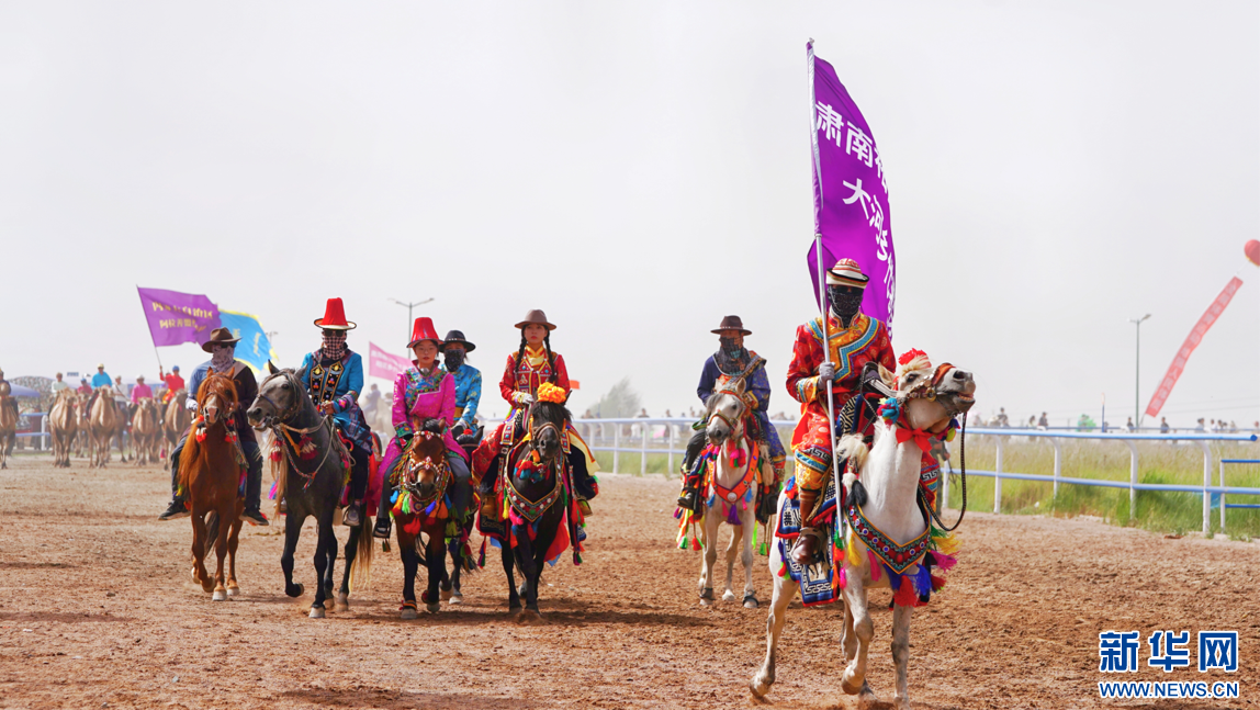 新华网兰州7月30日电(王小华 温晨钰)30日,2023年中国丝路大赛马——肃南裕固族自治县“石榴杯”赛马(骆驼)会在甘肃省张掖市肃南县开幕,来自青海、内蒙古等地和肃南县的共计300余匹马、60余峰骆驼齐聚索朗格赛马场,参赛选手们策马奔腾、扬鞭相竞,上演别样的“速度与激情”。