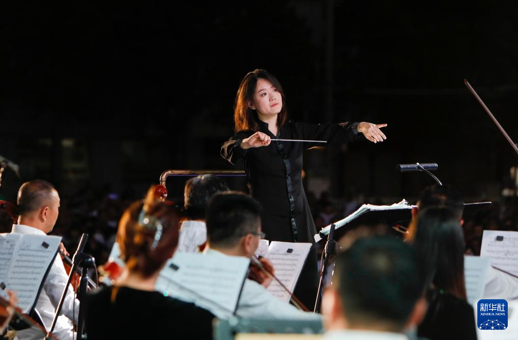7月31日,甘肃交响乐团首席指挥王璐在指挥演奏。新华社记者 方欣 摄