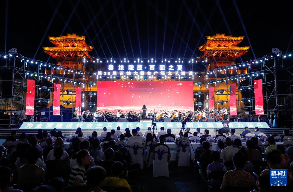 7月31日,观众在观看第三十五届“春绿陇原·西固之夏”百姓大舞台广场文艺调演。新华社记者 方欣 摄