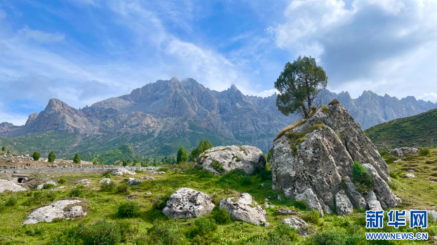 当天9时许,采风团走进海拔最高4447米的马牙雪山,这里因形似马牙、终年积雪而得名。远远望去,雪峰在草原、青松和蓝天的映衬下显得愈加壮观。