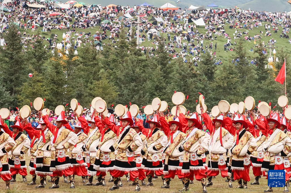 这是8月10日拍摄的甘南藏族自治州成立70周年庆祝大会演出现场。新华社记者 马希平 摄