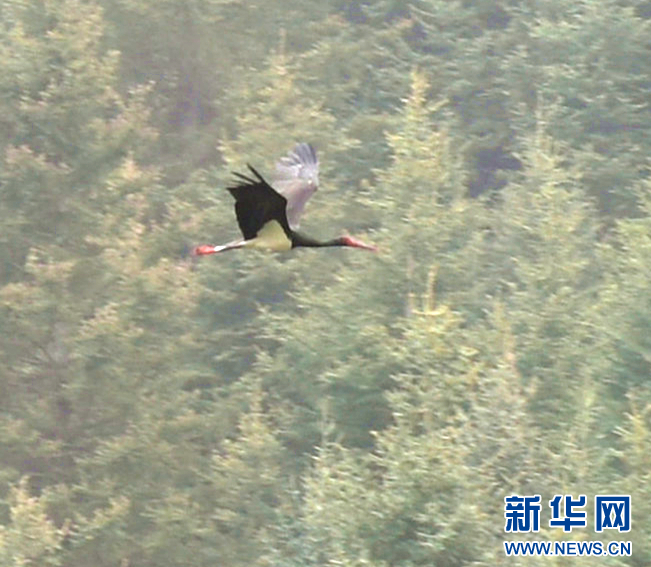 近日,在大熊猫祁连山国家公园甘肃省管理局张掖分局乌鞘岭保护站辖区内,管护人员在巡护中发现一只罕见的大鸟,沿着林区河道在悬崖周边展翅飞翔。经比对鉴定,这只大鸟是国家一级保护动物黑鹳,被称为“鸟中大熊猫”。