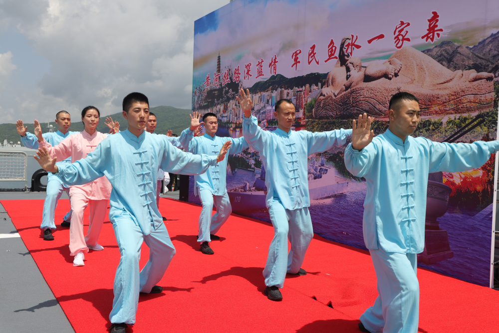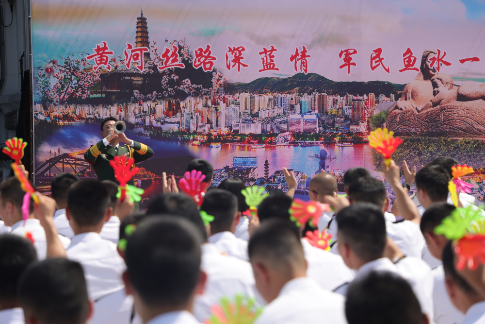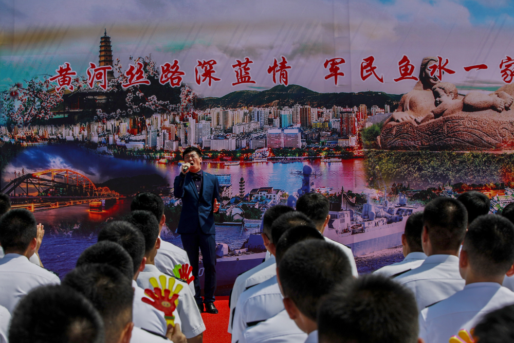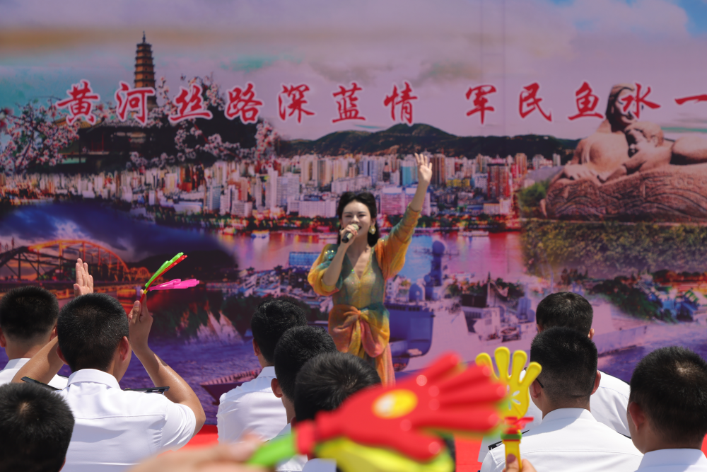 兰州市双拥文艺轻骑兵演出队和兰州舰官兵共同举办了主题为“黄河丝路深蓝情,军民鱼水一家亲”的文艺演出。(文:温晨钰、李鹏)