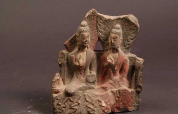 彩绘石雕释迦多宝佛像