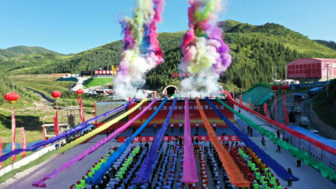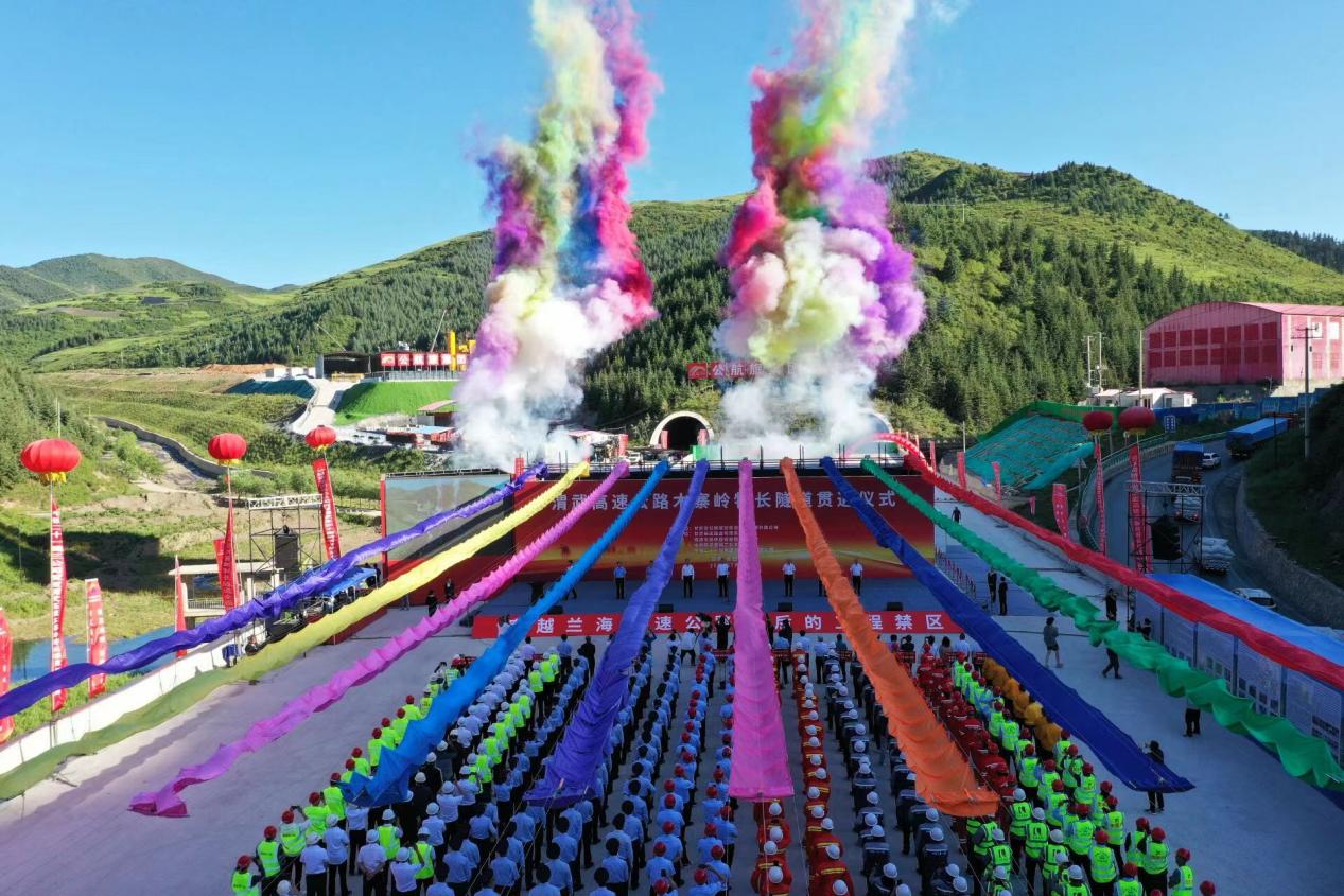 渭源至武都高速木寨岭特长隧道贯通仪式。(童张伟 摄)