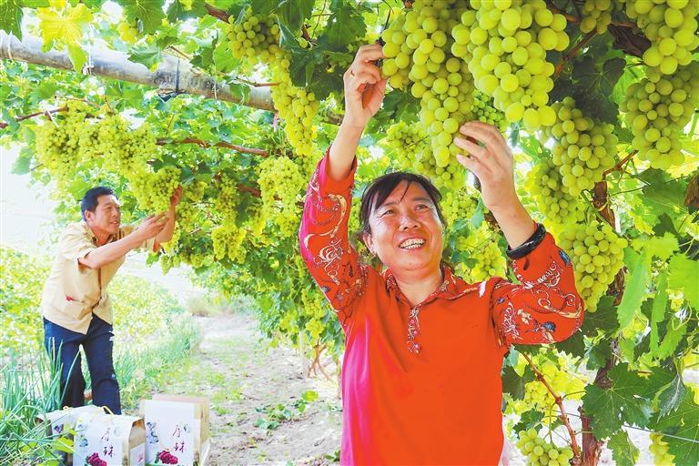 金塔迎来瓜果丰收季,各种时令瓜果挂满枝头,映红了农民的笑脸。(曹红祖)