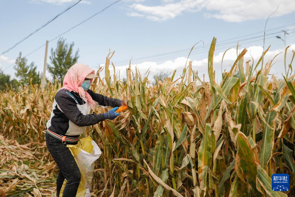 9月19日,甘肃省张掖市甘州区党寨镇农户在采摘制种玉米。新华社记者 方欣 摄