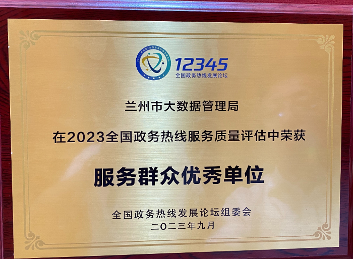 9月20日至21日,由中国信息协会和武汉市人民政府办公厅共同举办的“2023年(第五届)全国政务热线发展论坛”在湖北省武汉市召开,兰州市12345政务服务便民热线从全国334个评选城市中脱颖而出,评定为全国政务热线服务质量评估“A”级等次,兰州市大数据管理局荣获“服务群众优秀单位”,一名热线话务员荣获全国“最美热线人”奖。此次获奖也是继2020年、2021年、2022年之后,兰州市连续第四年荣获全国性政务热线奖项。