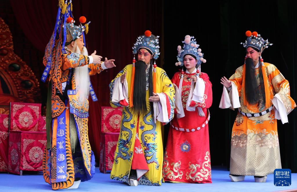 演员在甘肃省定西市体育公园演唱秦腔经典传统剧《打金枝》(9月19日摄)。新华社发(王克贤摄)