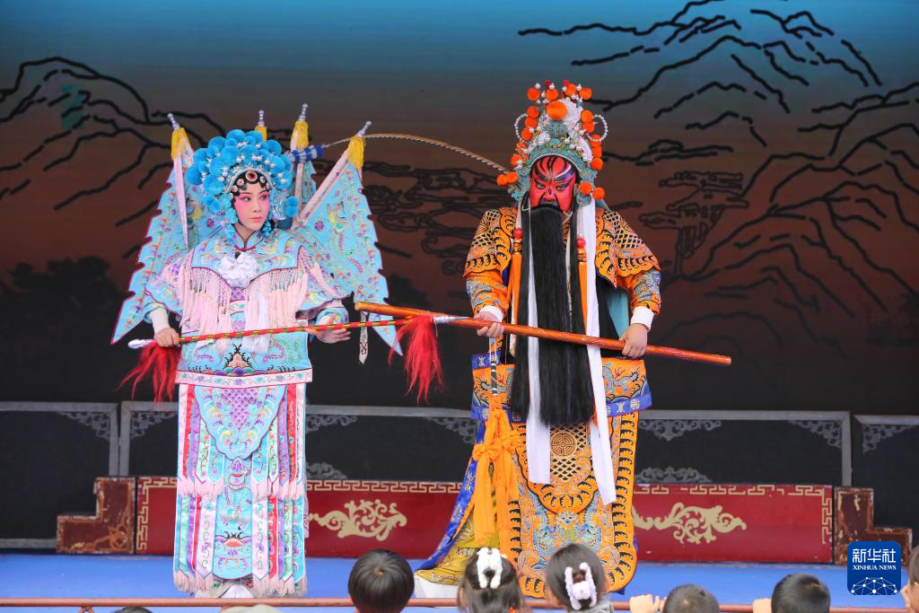 演员在甘肃省定西市体育公园演唱秦腔经典传统剧《周仁回府》(9月21日摄)。新华社发(王克贤摄)
