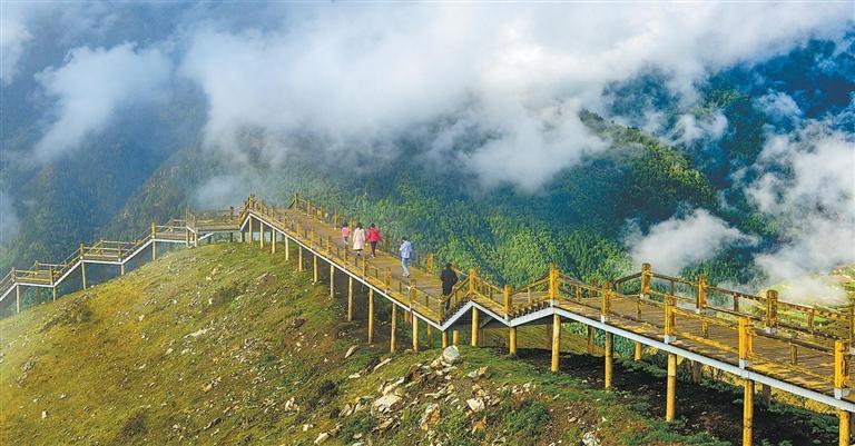 位于迭部县与岷县交界处的铁尺梁云雾缭绕,美若仙境,吸引游客驻足观赏、拍照留念。新甘肃·甘肃日报通讯员 胡卫东