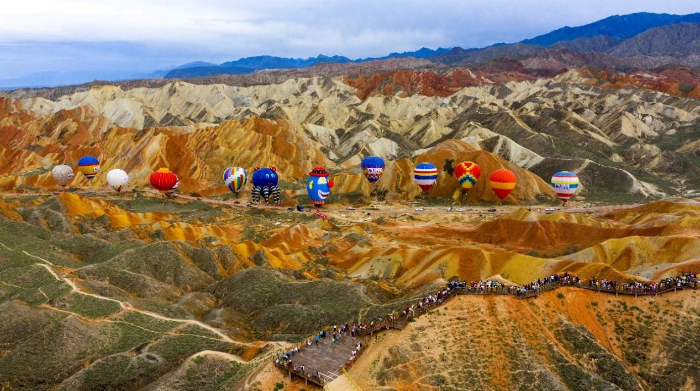 秋高气爽,天高云淡,正是出游好时节。在张掖七彩丹霞景区、马蹄寺景区、巴尔斯生态旅游景区、焉支山国家森林公园,处处人头攒动。张掖平山湖大峡谷景区同样人气满满,为丰富游客体验,景区增加了蒙古族民俗风情演绎、迎宾仪式等。在张掖国家沙漠体育公园,来自全国各地的游客在这里观赏皑皑祁连山雪山下的沙海风光,感受“西北第一滑”彩虹滑道、沙漠冲浪、沙漠越野、卡丁车、骆驼骑行,寻味沙漠的乐趣。