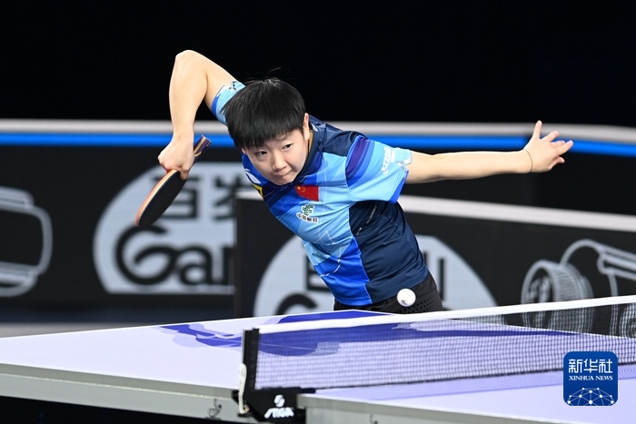 10月8日,孙颖莎在比赛中回球。新华社记者 范培珅 摄