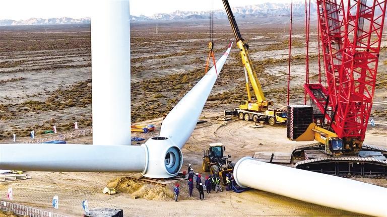 原标题:玉门新民堡10万千瓦风电项目首台风机吊装成功