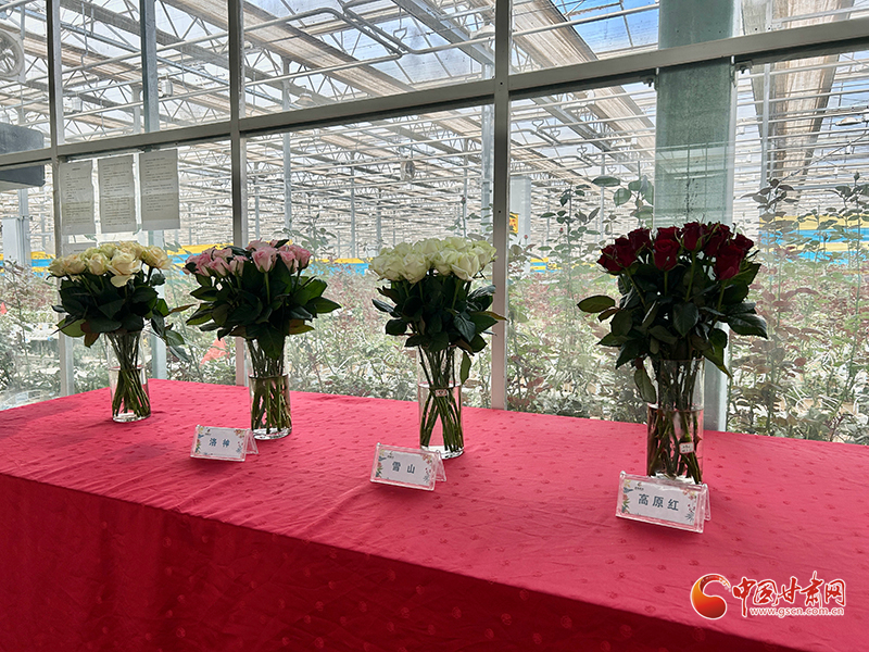 兰州新区现代农业公园五号大棚里种植的玫瑰品种展示台。冯倩倩/摄