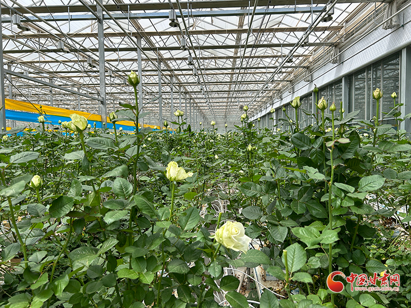 兰州新区现代农业公园五号大棚里种植的雪山玫瑰。冯倩倩/摄