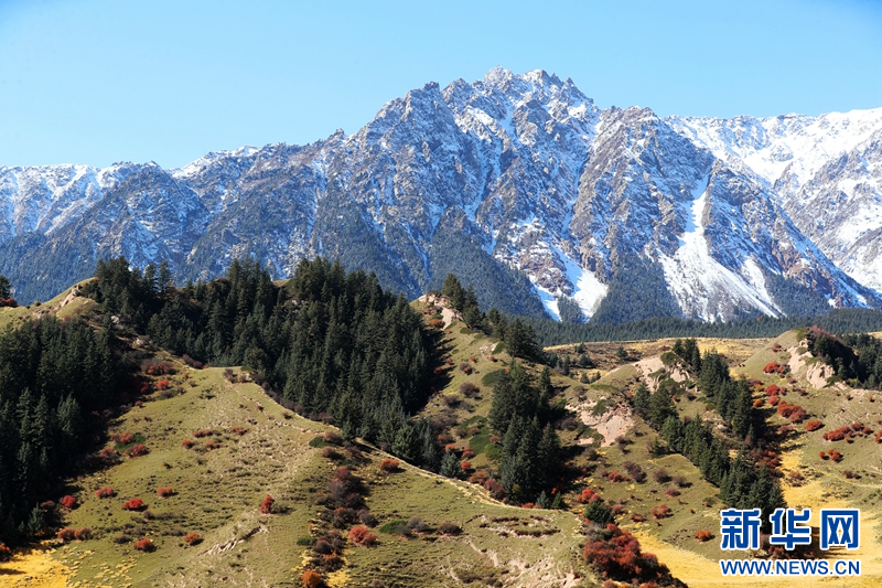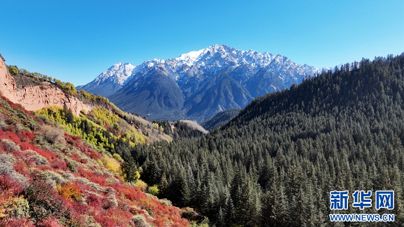 深秋时节,在甘肃省张掖市肃南裕固族自治县境内的祁连山国家公园,山顶白雪皑皑,山间云雾缭绕,山林色彩斑斓,展现出天地之大美。(图片:成林 视频:刘欣瑜 成林)