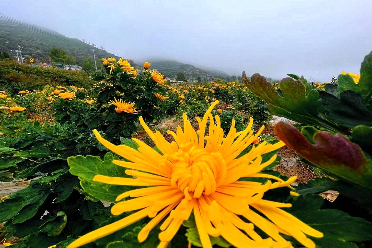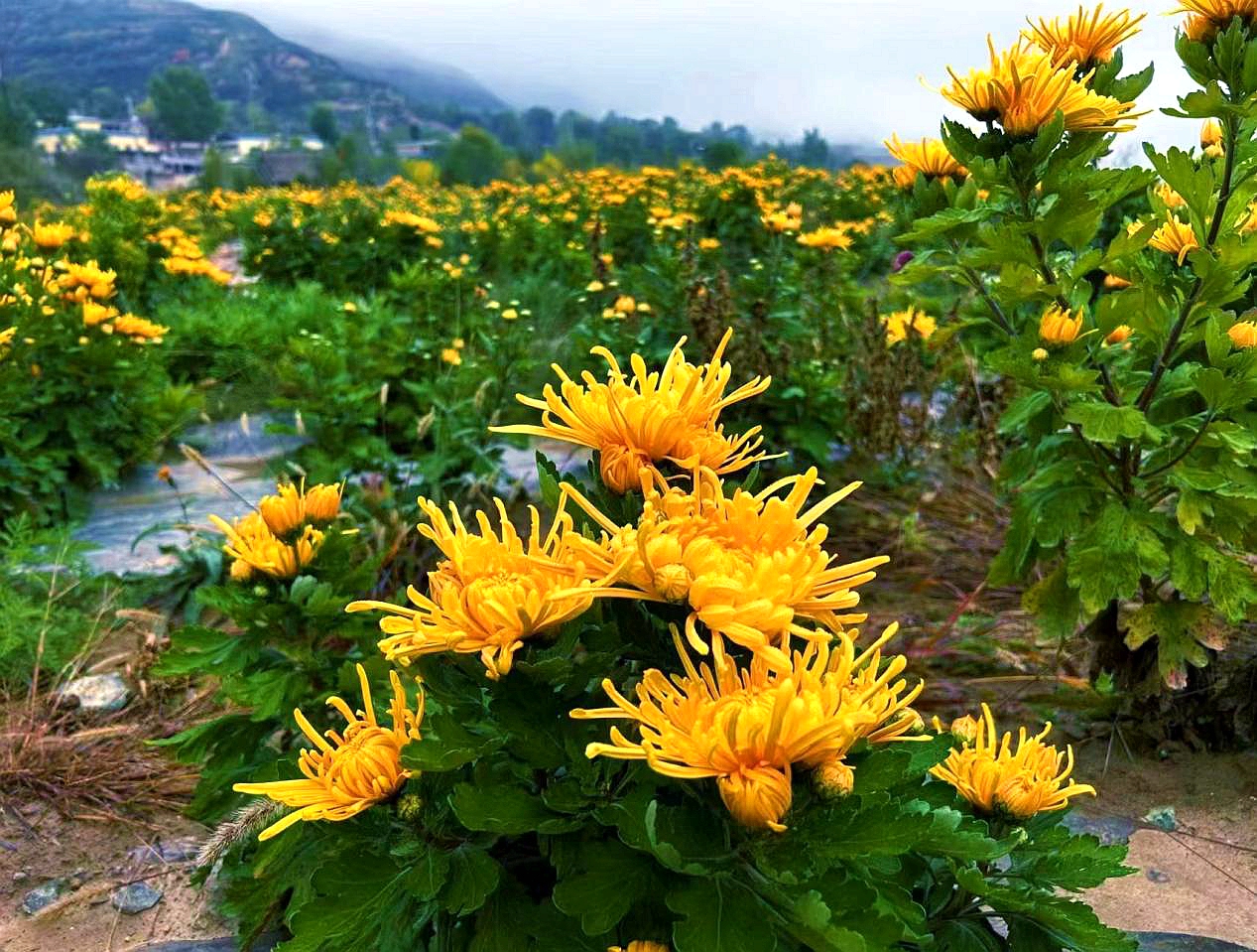 每逢周末,周边乡镇的游客便三五成群、携妻带子、驱车前来,赏桦林秋韵,品皇菊清香,衣着靓丽的美女们在花间打卡拍照、观光赏花,欢快的孩子们在丛中穿梭嬉戏、流连忘返,金色的花海随着微风荡起层层波浪,上下起伏、摇曳多姿,好一幅新时代的“金色画卷”。
