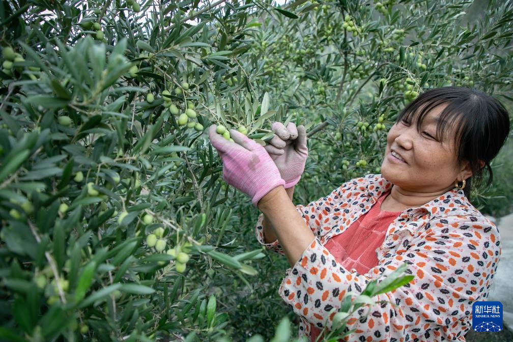 新华社兰州10月19日电 题:青山翠谷挂“金果” 采摘榨油生产忙——我国最大油橄榄产区秋收见闻