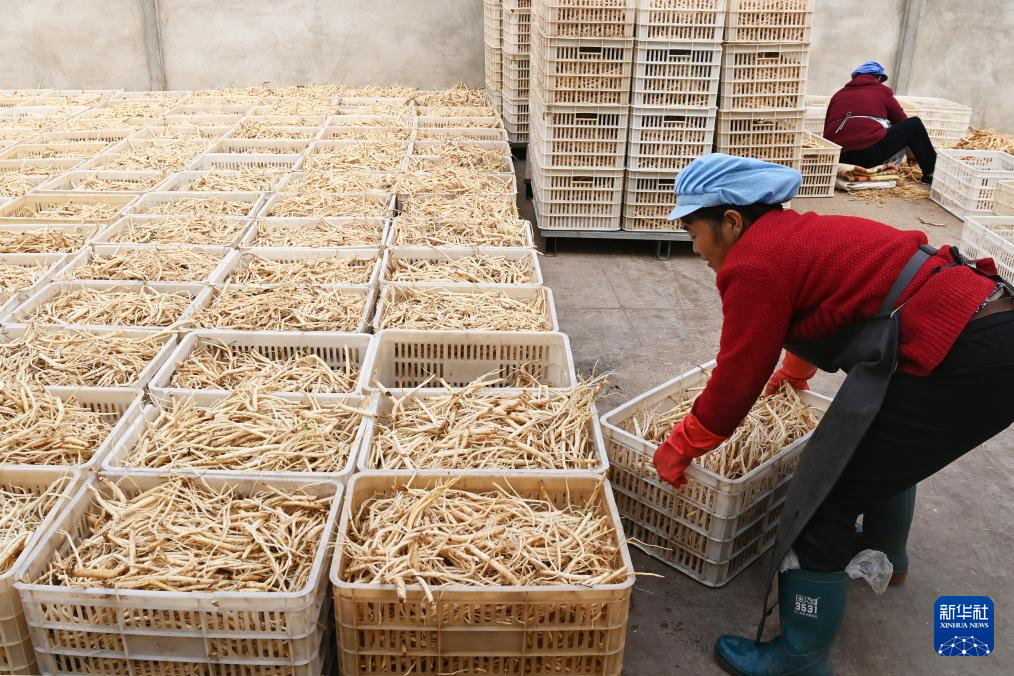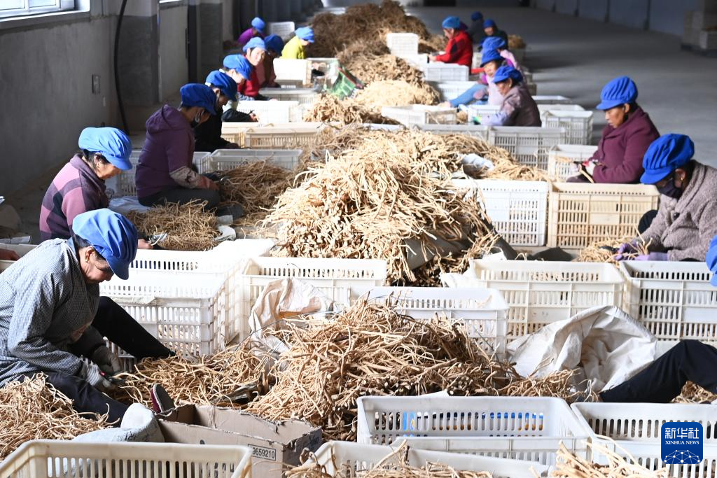 金秋时节,甘肃省定西市岷县的党参、黄芪等中药材陆续丰收,当地中药材企业组织工人加工晾晒。岷县位于甘肃省南部,是西北中药材主产区之一,全县中药材种植面积65万亩左右。
