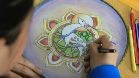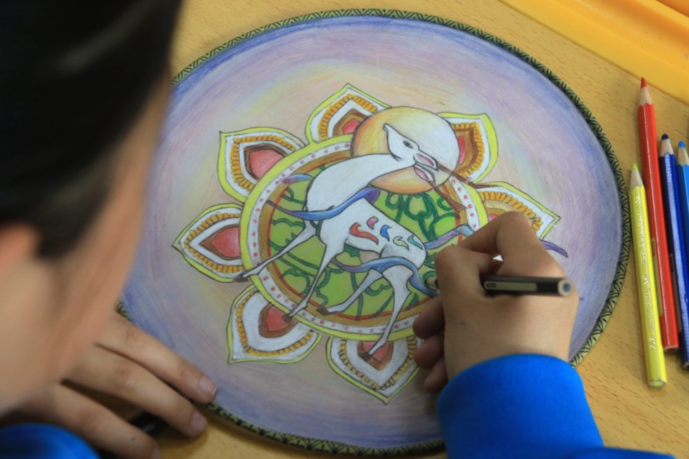 绘画敦煌神韵。近年来,敦煌中学将敦煌壁画艺术引入校园,整合专业师资力量,通过美术课堂、社团活动和主题实践的方式,加强学生对敦煌壁画艺术的了解,让有兴趣的学生在校园里开展壁画临摹和艺术创作,丰富校园文化生活,让学生感受敦煌文化的魅力。敦煌市全面拓展艺术教育,坚持以敦煌飞天、壁画、彩塑、剪纸等为美术教育的重要内容,全体师生自己动手,拿起画笔,将敦煌飞天、敦煌壁画搬上校墙、挪进教室、画在心间。定期组织中小学生走进敦煌莫高窟、画家村、莫高里工匠村,聆听壁画保护专家和敦煌著名画家的教导,动手实践敦煌壁画和彩塑的制作工艺,感受敦煌博大精深的艺术魅力。