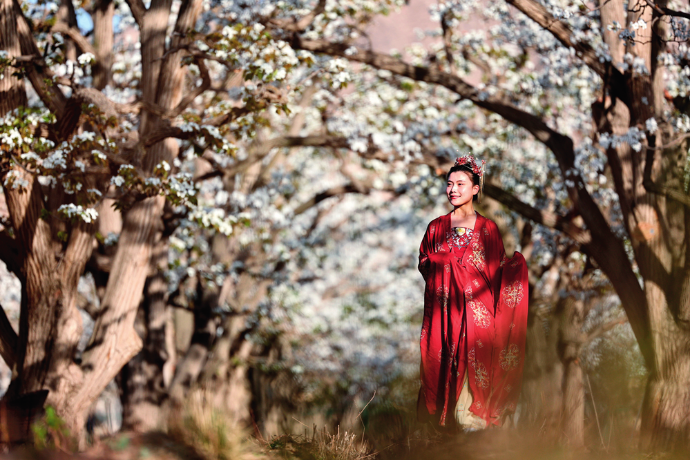 ◇9423株树龄百年以上的古梨树,年纪最大的已近500岁。3000多户人家依梨园而居,千百年来,生生不息。每到春天,参天大树万花齐放,雪白梨花铺天盖地。在黄土梁峁下、奔腾黄河边绽放出生命的壮丽意境。