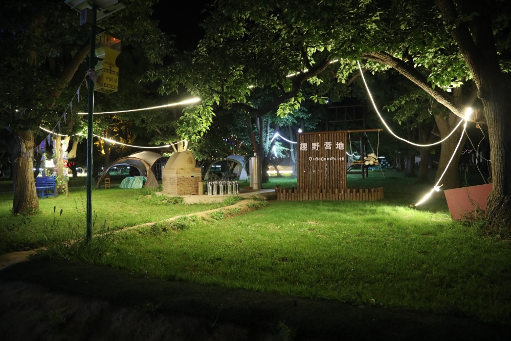 入夜,原本只能听见黄河水流声和树叶婆娑声的梨园不再漆黑寂静。灯光璀璨、歌声摇曳,夜晚的古梨园,也热闹起来了。