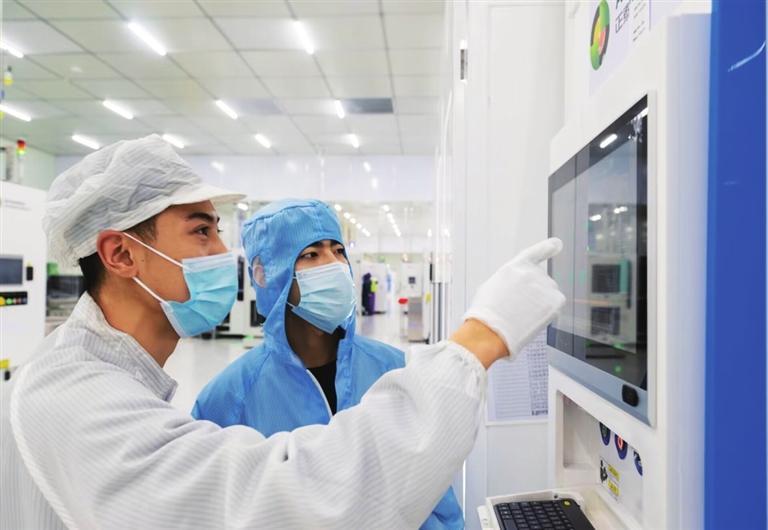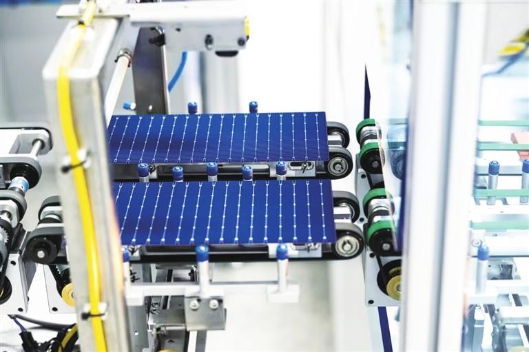 欧昊高效异质结太阳能电池及组件生产项目生产线在生产高效异质结电池片。 谢沛宏