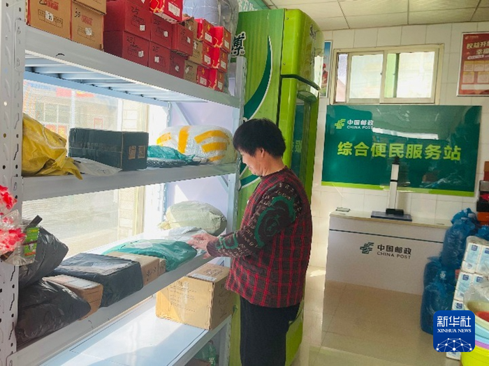 高墩营村综合便民服务站内,负责人正在整理包裹。新华社记者李杰 摄