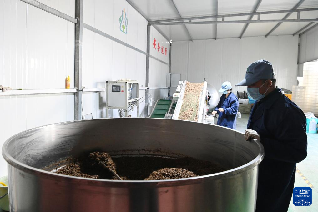 11月29日,在后官寨镇司官寨村食用菌基地,工作人员查看菌种原料。新华社记者 范培珅 摄