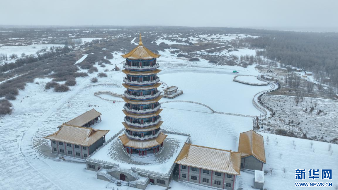 这是12月14日拍摄的雪后胡杨塔(无人机照片)。新华网发(曹红祖 摄)