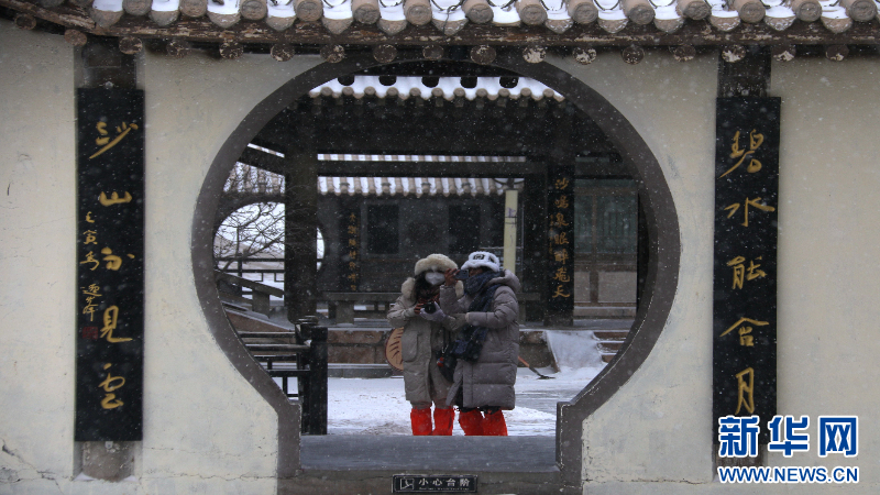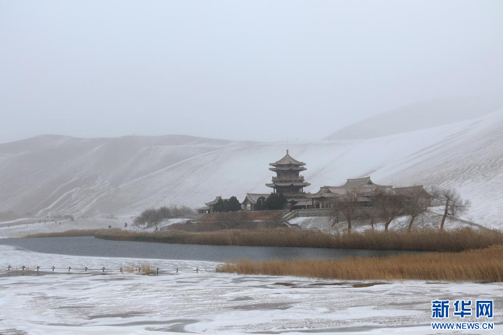 这是12月14日拍摄的甘肃省敦煌市鸣沙山月牙泉景区雪景。新华网发(张晓亮 摄)
