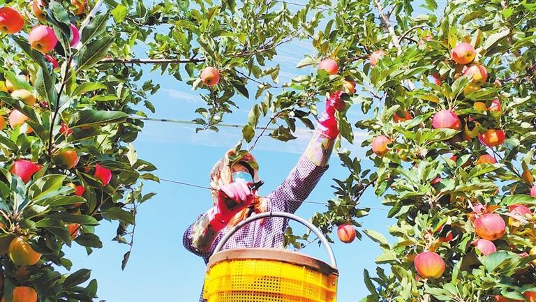 镇原县太平镇果农采摘苹果。(资料图)新甘肃·甘肃日报通讯员 田晓博
