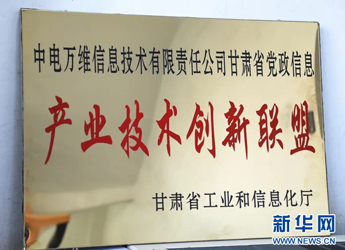 图为甘肃省党政信息产业技术创新联盟牌匾。(受访者供图)