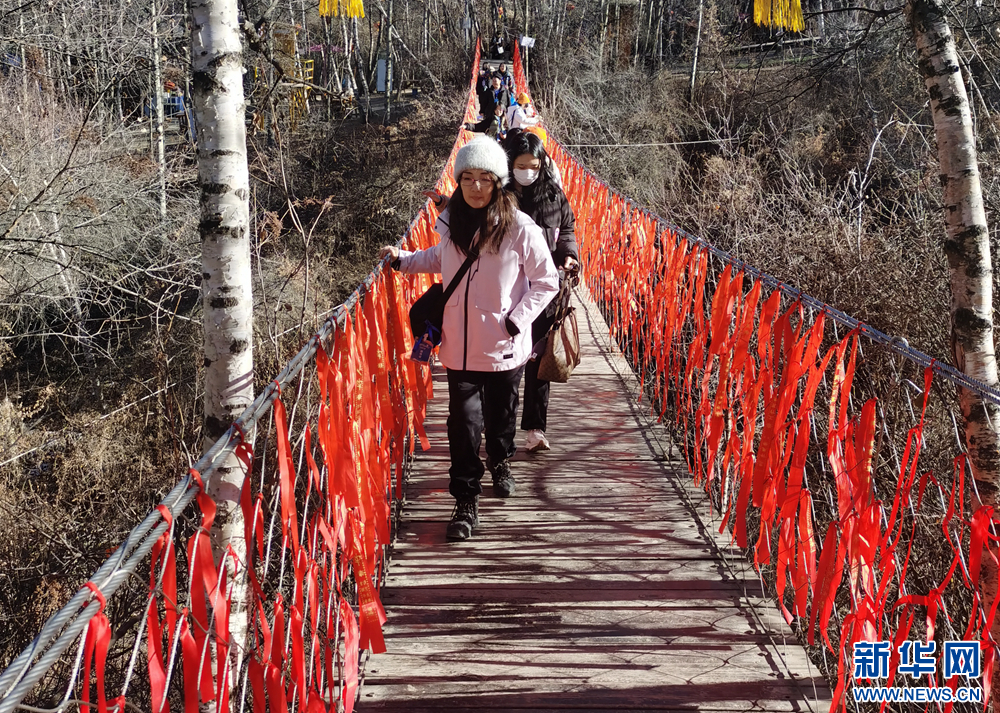白桦林景区位于甘肃省临夏回族自治州康乐县八松乡烈洼村,景区内树木主要以白桦树为主,交通便利,风景秀丽。冬日里,白桦林景区的冰雕、冰雪滑道、网红桥等吸引着各地游客纷至沓来,感受自然与人文共融的美好风光。新华网(王生元 摄)