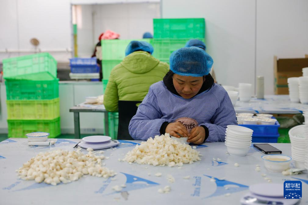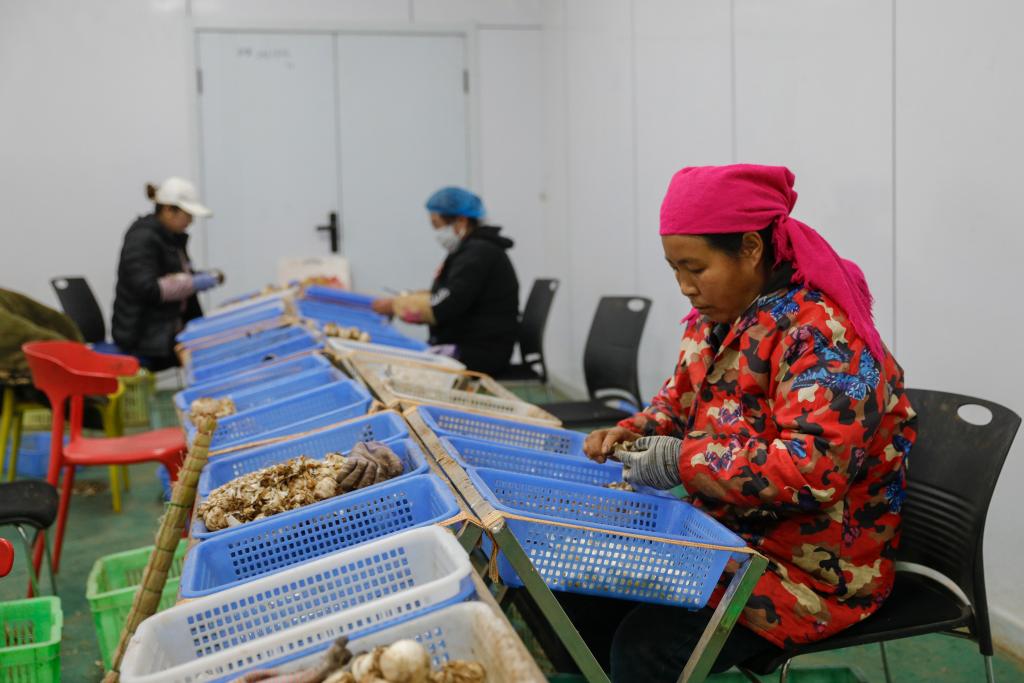 1月16日,在渭源县田家河乡元古堆村,甘肃鑫禾亿农业科技有限公司的工作人员在分拣百合。新华社记者 方欣 摄