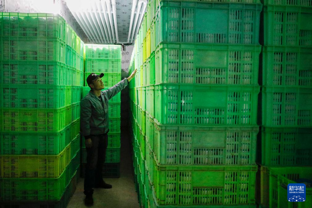 1月16日,在渭源县田家河乡元古堆村,甘肃鑫禾亿农业科技有限公司的工作人员在冷库里清点库存。新华社记者 张智敏 摄