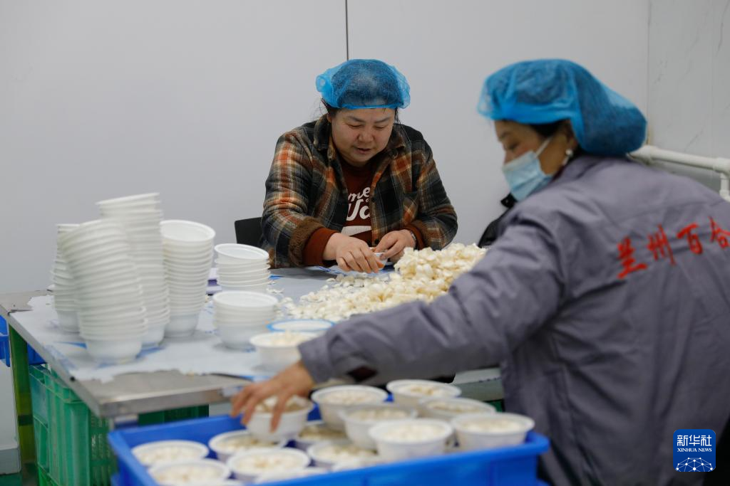 1月16日,在渭源县田家河乡元古堆村,甘肃鑫禾亿农业科技有限公司的工作人员在分拣百合。新华社记者 张智敏 摄
