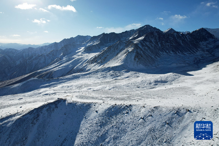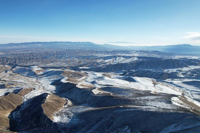 这是1月22日在甘肃省张掖市肃南裕固族自治县大河乡境内的巴尔斯雪山上拍摄的祁连山脉及河西走廊景象。组图均由新华每日电讯记者 范培珅 摄