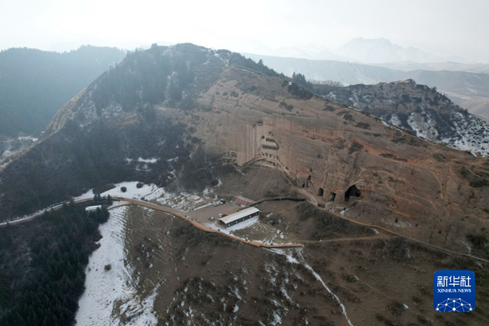 这是1月22日在甘肃省张掖市肃南裕固族自治县马蹄藏族乡拍摄的马蹄寺石窟群——北寺石窟景象。