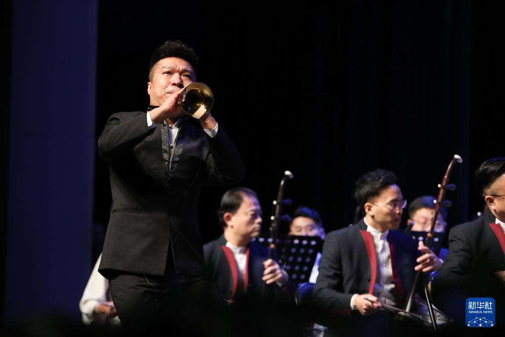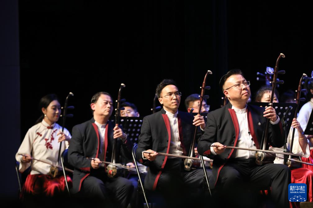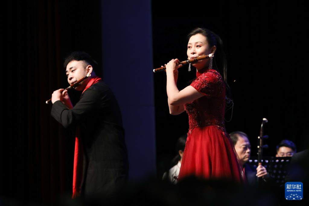 2月3日晚,在甘肃黄河剧院,演奏家在2024年新春音乐会《陇上国乐》中表演。新华社记者 马希平 摄