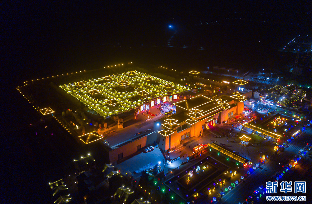 “九曲黄河灯阵”是甘肃省张掖市甘州区碱滩镇古城村流传上千年的历史文化遗产。2月19日晚,“九曲黄河灯阵”亮灯迎客,吸引了众多市民和游客前来观赏规模宏大的视觉盛宴。新华网发(成学磊 摄)