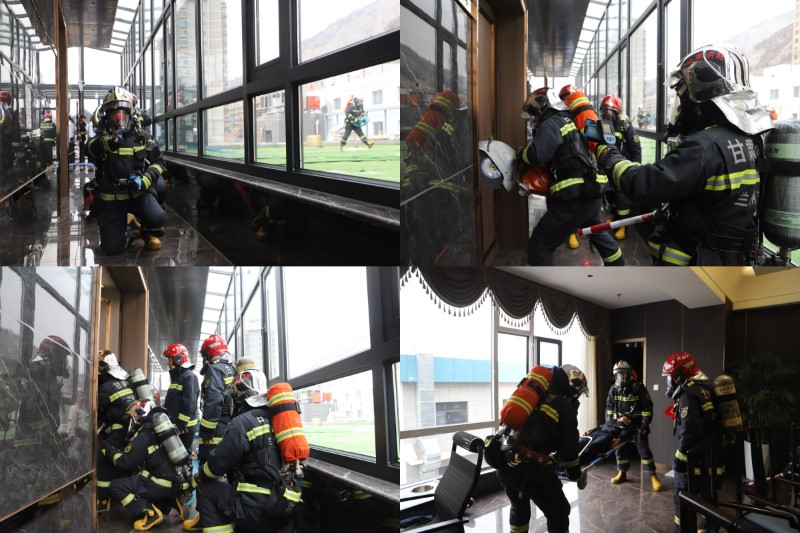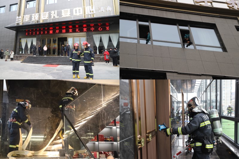 熟悉工作结束后,模拟兰岸臻宴礼宴中心4楼一包厢引发火灾,且有2人员被困。随着现场指挥员一声令下,演练正式开始,全体人员严格按照“救人第一,科学施救”和“先控制、后消灭”的处置原则,密切配合,协同作战。现场指挥员结合熟悉情况,设置不同职责战斗小组和随机着火部位,本着从实战出发的原则,科学部署进攻路线及供水方案,从难从严设置科目,锤炼全体人员在灭火救援现场能以最快的速度和科学合理的战术开展灭火救援行动。整个演练过程,各参演单位协同作战,分工明确,密切配合,圆满完成了此次实战化救援演练任务。