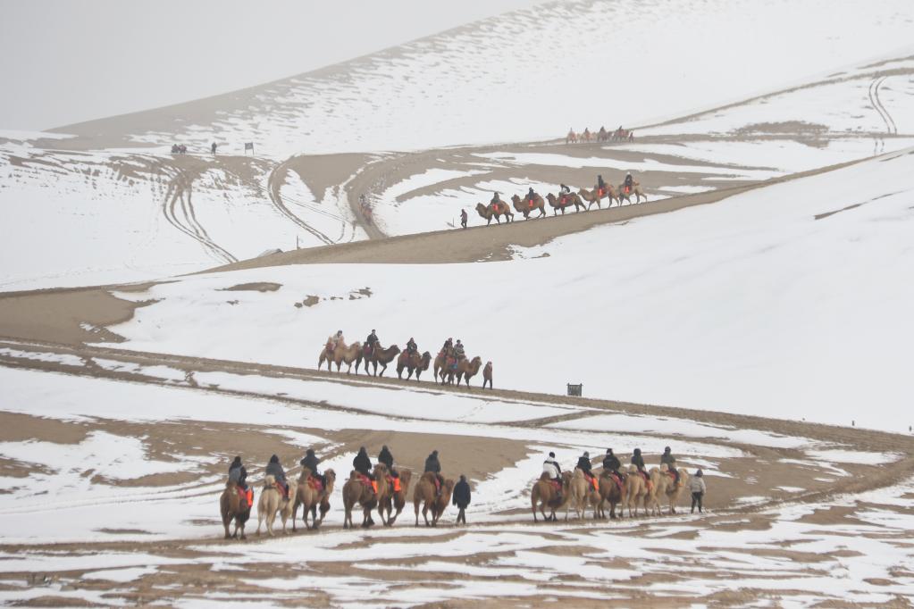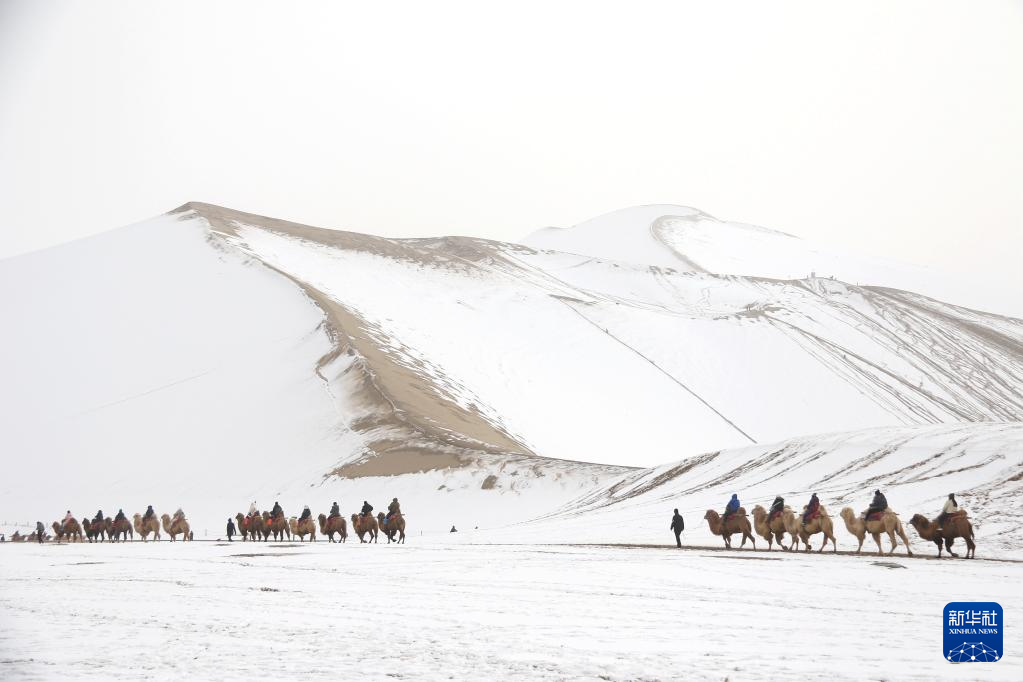 甘肃省敦煌市出现降雪天气。丝路敦煌雪景如画,美不胜收。
