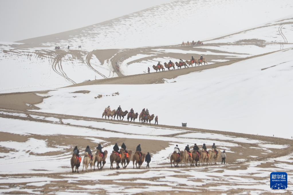 2月20日,游客在敦煌市鸣沙山月牙泉景区游览。新华社发(张晓亮摄)